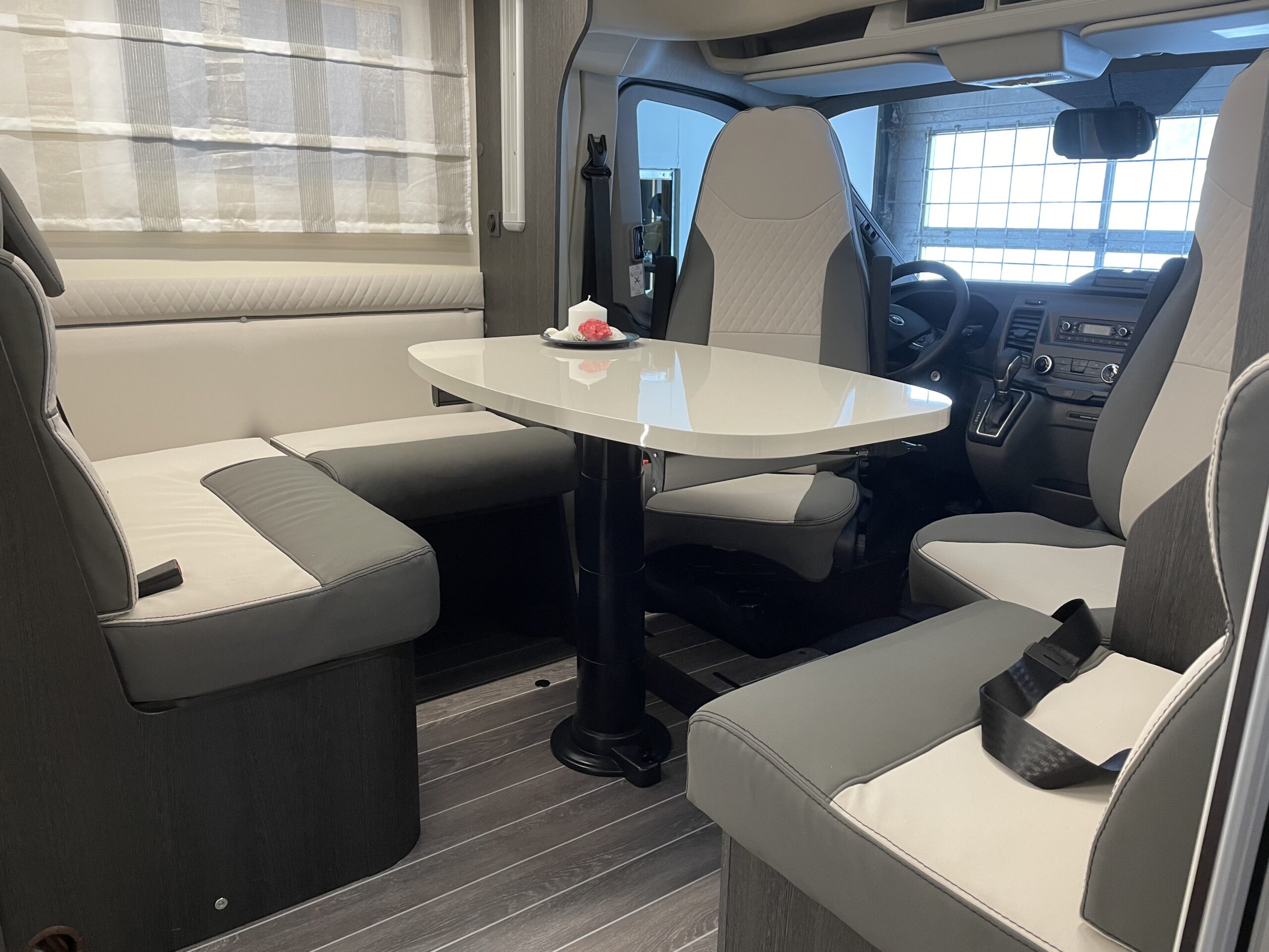 Denne autocamper har hele 5 selepladser og 5 sovepladser. Perfekt hvis hele familien skal på tur. Den har enkeltsenge bag i bilen der nemt kan opredes til en stor dobbeltseng. Den har også en stor, dobbelt sænkeseng over siddegruppen.
