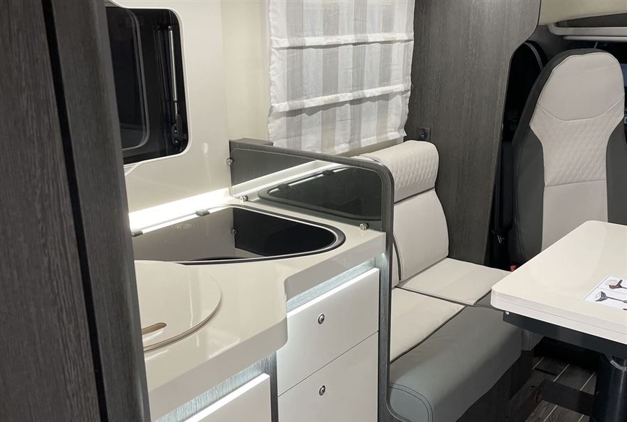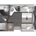 Denne autocamper har 4 selepladser og 4 sengepladser. Den har face to face siddegruppe, der gør at autocamperen virker dejlig rummelig. Bagerst har den 2 store enkeltsenge , der nemt laves om til en endnu større dobbeltseng. Derudover er kan siddegruppen forrest i vognen nemt omdannes til sovepladser.